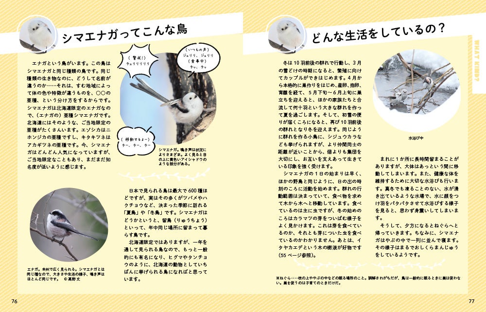 巻末にはシマエナガの生態も掲載しているので、野鳥のシマエナガについても詳しくわかります。