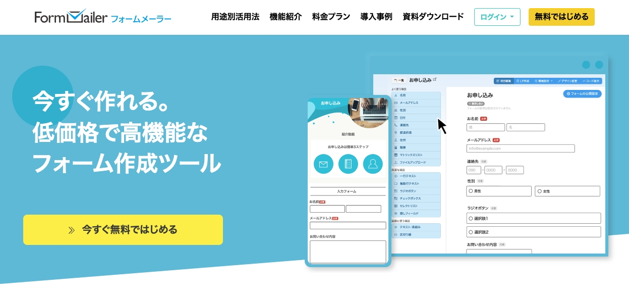 フォームメーラーの特長( https://www.form-mailer.jp/ )