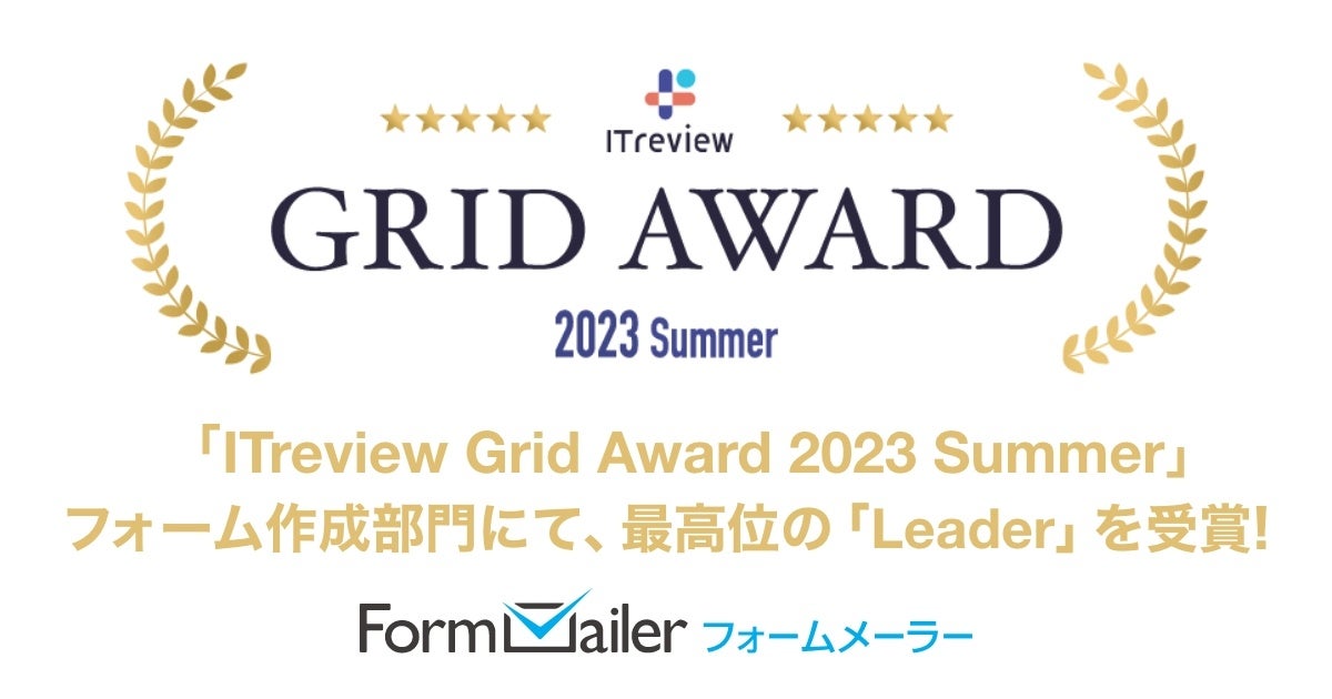 クラウド型フォーム作成サービス「フォームメーラー」が「ITreview Grid Award 2023 Summer」で最高位・Leaderを5期連続受賞