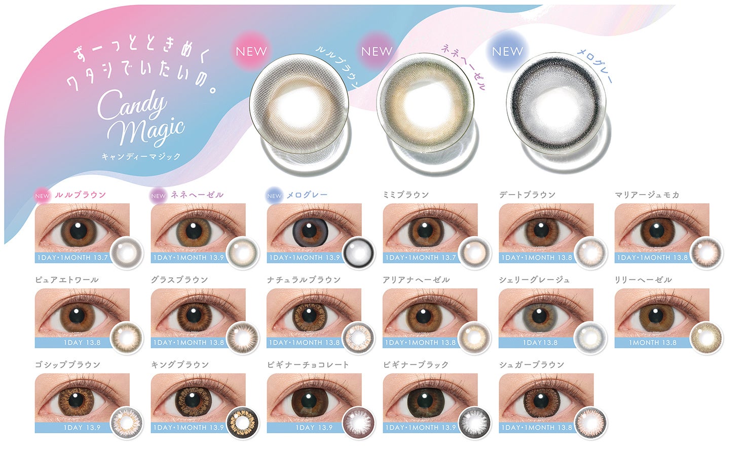 大人気カラコンブランド『candymagic (キャンディーマジック) 1day&1month』リニューアル!可愛いってずるい♡ちゅるんと盛れる新3色を発売開始!