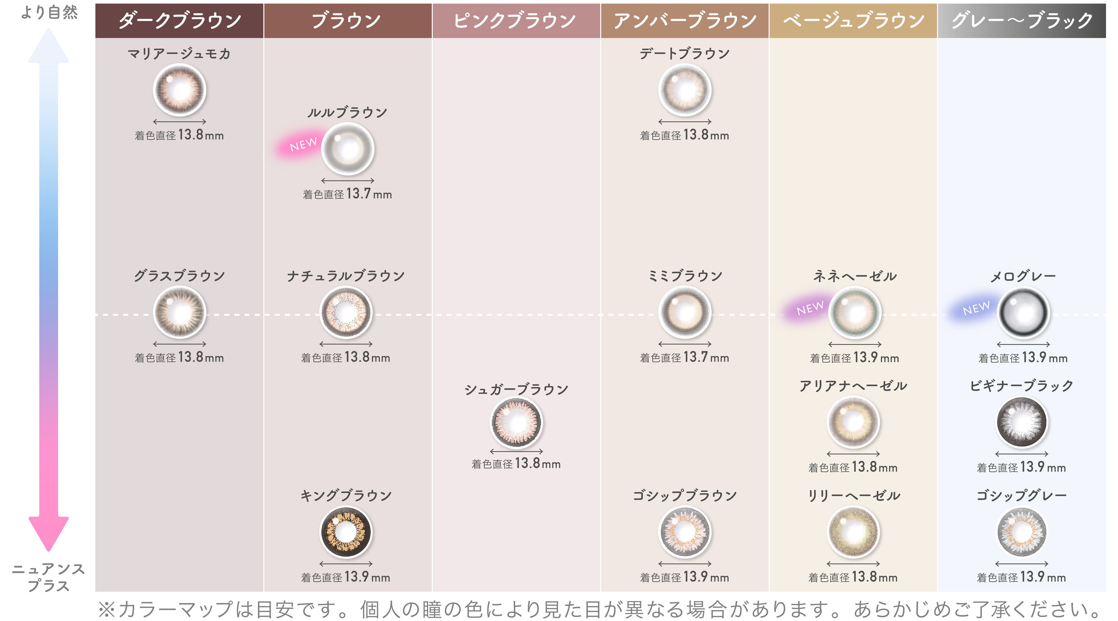1month:GOSSIP BROWN, GOSSIP GRAY,NATURAL BROWN