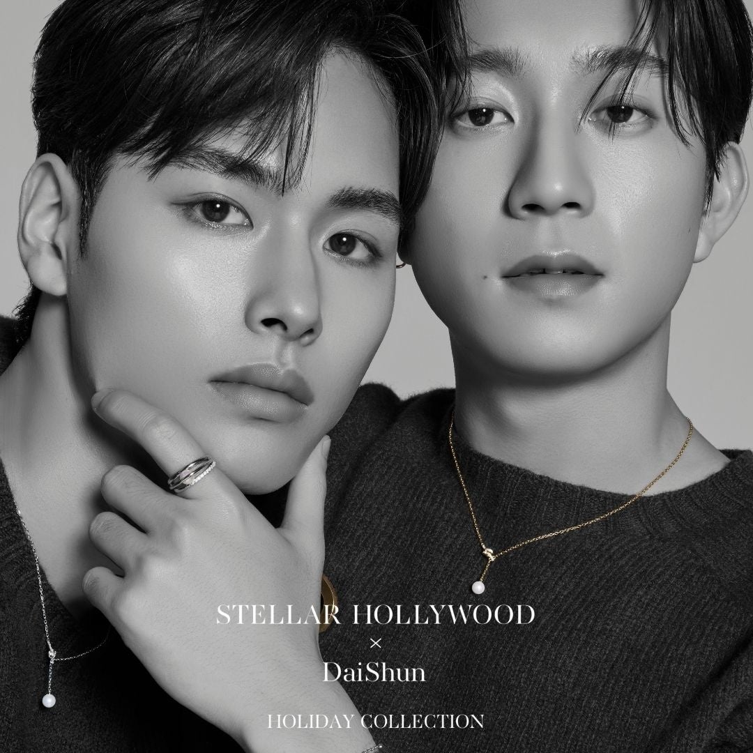 <STELLAR HOLLYWOOD>の既存商品に加え、今年の冬を彩るホリデーシーズン限定コレクションを展開します。限定コレクションは、今年、世界中で話題沸騰となったNetflixの人気リアリティ番組「THE BOYFRIEND」から生まれたDaiShunの愛称で知られているカップルの中井大さんと中西瞬さんを迎えたデザインコラボレーションジュエリーです。コラボアイテムをお買い上げの方には数量限定のスペシャルオーナメントをプレゼントします。
