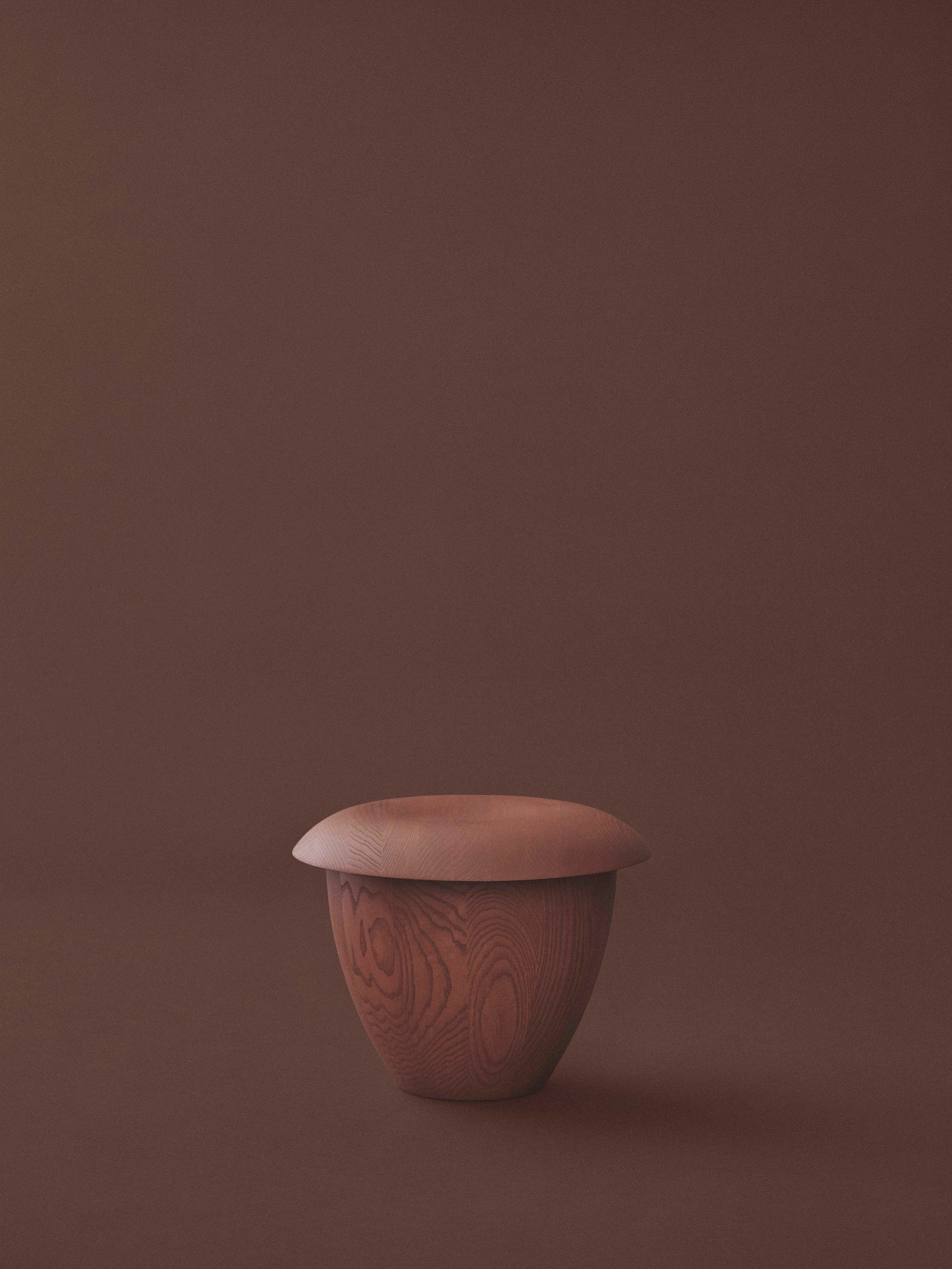 オランダのアーティストでありデザイナーでもあるアルド・バッカーが、2015年に発表した漆塗りの不思議なスツール「ピンク・スツール」を、アッシュ材の「BON」に生まれ変わらせました。この彫刻的なスツールは相反する2つの容器の形を組み合わせたもので、直立した奥行きのある垂直の形と、座面を定義する平らな水平の形から成ります。
