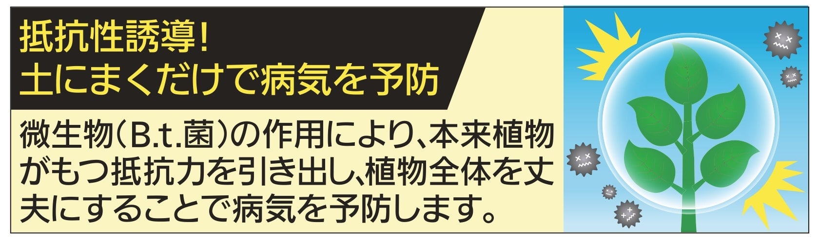 微生物(Bt菌)の作用により、本来植物がもつ抵抗力を引き出し