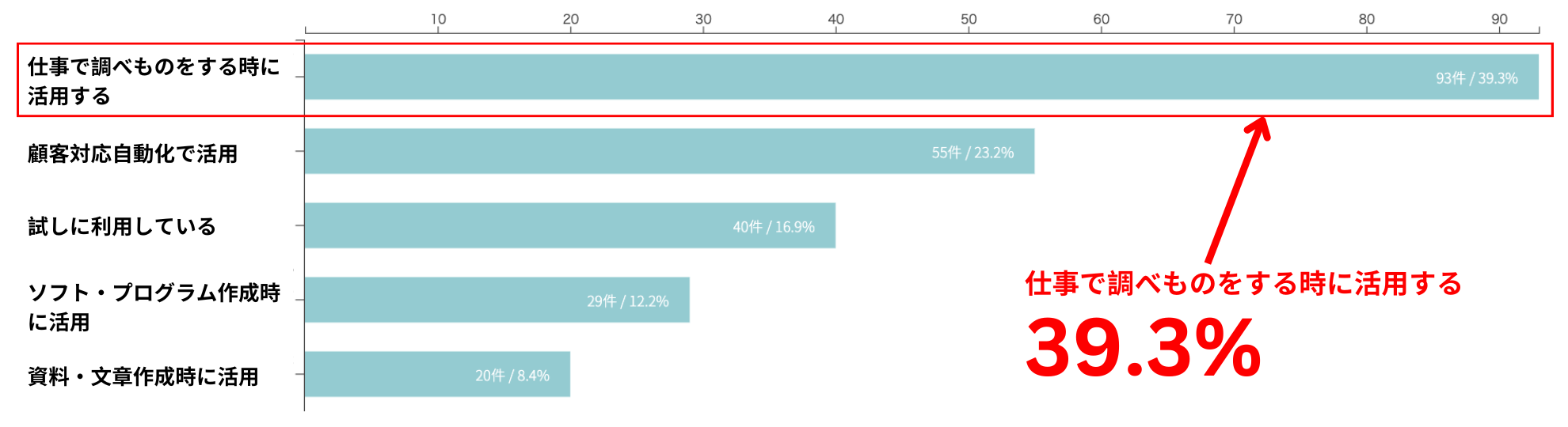 1.「調べものをする際に活用」が約40%を占める