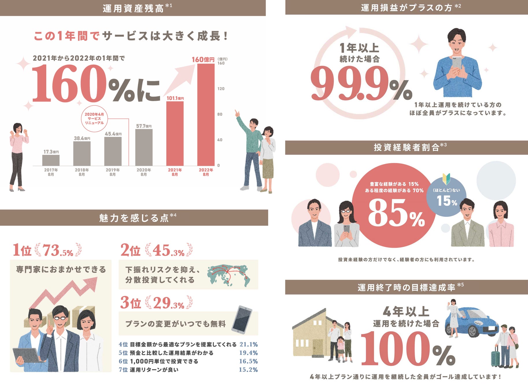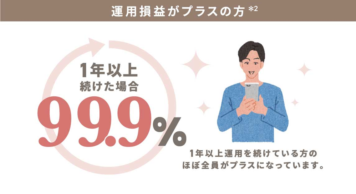 *2:2022年8月17日時点。運用開始から1年以上経過、かつ運用残高がある契約のうち、運用損益がプラスになっている契約の割合(小数点以下第二位を四捨五入)
