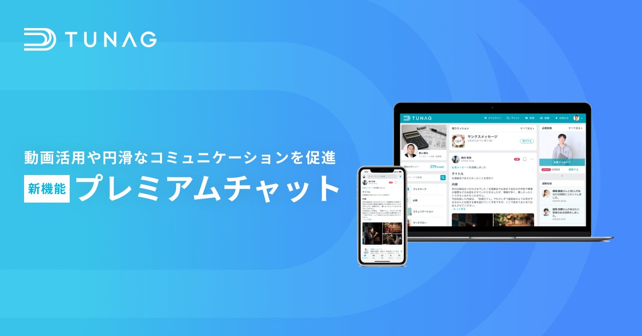 TUNAG、動画の活用による業務効率化や円滑なコミュニケーションの促進を目的に「プレミアムチャット」の提供を開始