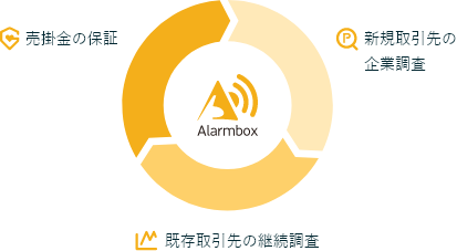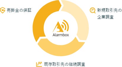 AI与信管理クラウドサービス「アラームボックス」( https://alarmbox.jp )は、スマートフォンやPCから取引先を登録するだけで、取引先の企業調査や売掛金保証ができるクラウドサービスです。収集・判断の難しいネット上の情報を、与信への影響度を診断したうえでお届けするため、インターネット上の情報を活用した「高精度」な与信管理を、「カンタン」に、「低価格」で導入できます。それにより、取引先の情報収集に関わる業務負荷を大幅に削減し、信用状況の変化をいち早くキャッチして、リスクに迅速に対応できます。