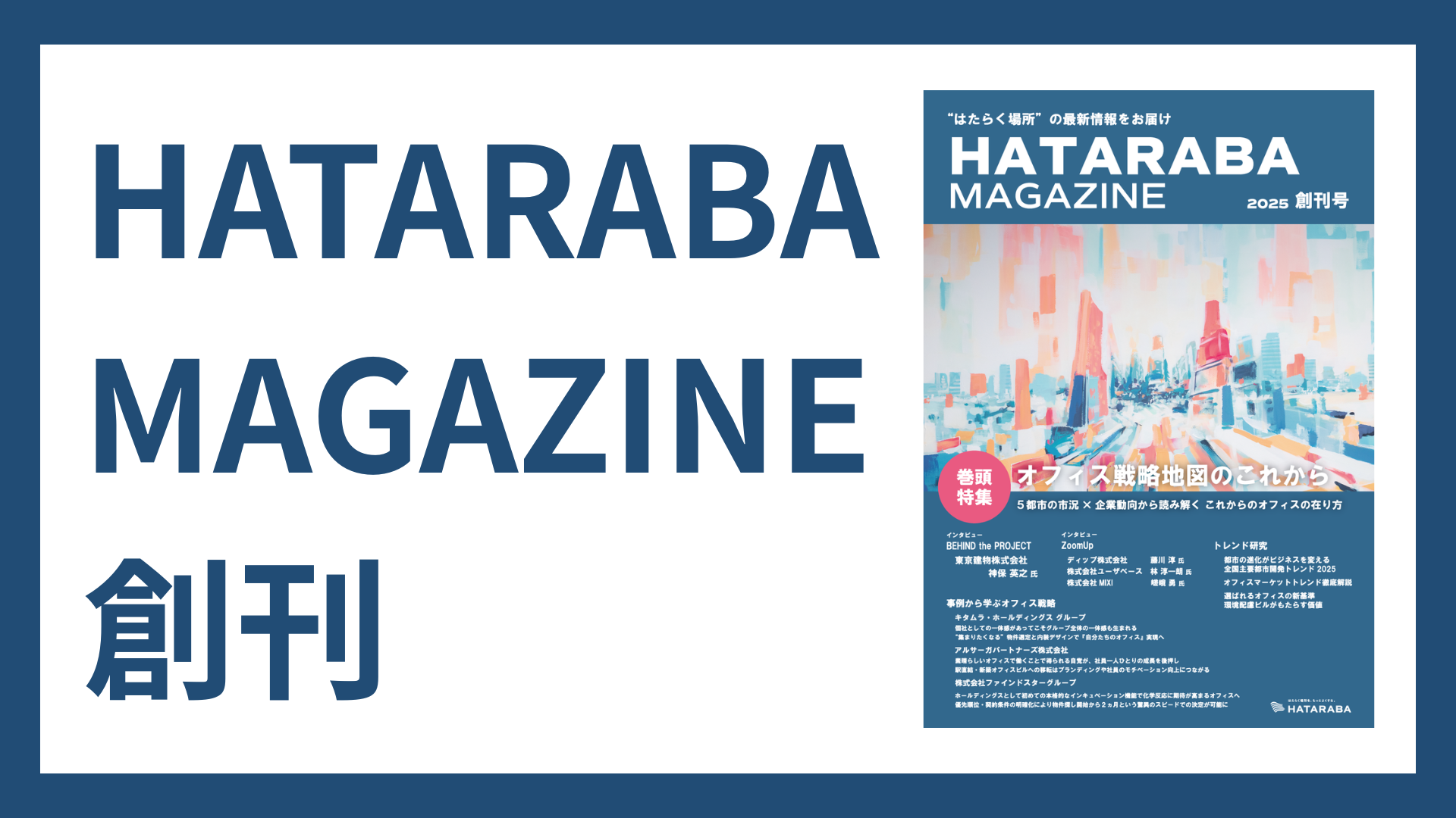 オフィス仲介・移転支援を行う株式会社HATARABA(本社:東京都渋谷区、代表取締役:森村泰明、以下「HATARABA」)は、2025年5月、企業の「オフィス戦略」と「働き方の” 今”」を実例と専門知見から多角的に読み解く情報誌『HATARABA MAGAZINE(ハタラバマガジン)』を創刊いたしました。
