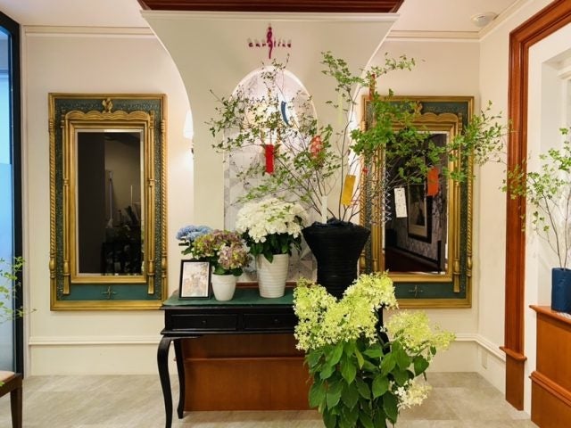 また、より一層お客様の声に応えるため、化粧品の企画・開発、販売に特化した化粧品事業部を2019年に立ち上げました。エステティシャン歴25年以上の経験があり、日本化粧品検定の1級を取得し所定の認定プログラムを修了した「コスメコンシェルジュ」の資格を持つ、ベテラン美容専門家4名が在籍。日頃から美容・医療・健康分野に関する情報収集に努め、お客様とスタッフへのヒアリングを行い、オリジナル化粧品の企画・開発・改良に取り組んでいます。サロンでは、お客様に心からくつろいでいただくために週に一度、季節の生花を生けています。また、ひな祭りやクリスマスといった季節のイベントなど、空間演出には日々気を配っています。