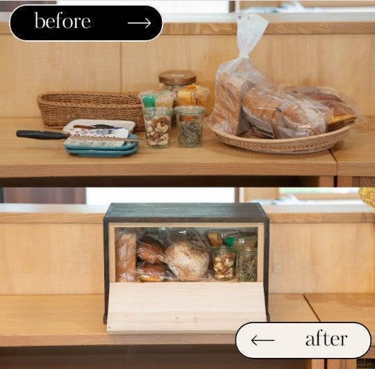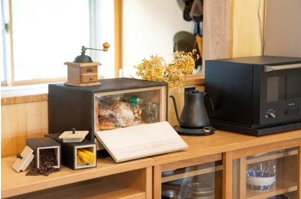 今回の保管箱は、その桐の知恵を現代の台所に最適化したもの。表面を炭化させる焼桐仕上げにより、風合いと実用性を両立し、電気を使わず“置くだけ”で日々の保管環境をやわらげます。パンに限らず、海苔・昆布・かつお節、煮干し・干し椎茸、茶葉、乾き菓子などの保管に対応します(食品は袋・密封容器のまま保管箱=外箱として使用)。