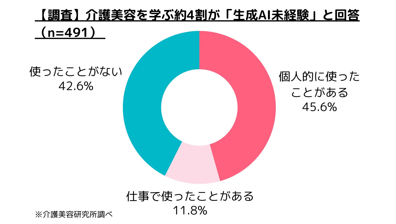 介護美容研究所がケアビューティストを目指す受講生491名を対象に実施した調査では、生成AIに対して