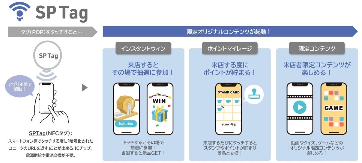 ●SP Tag(スマートフォンでタッチすることで、その「場所」でしか得られない体験を提供する来店促進ソリューション)