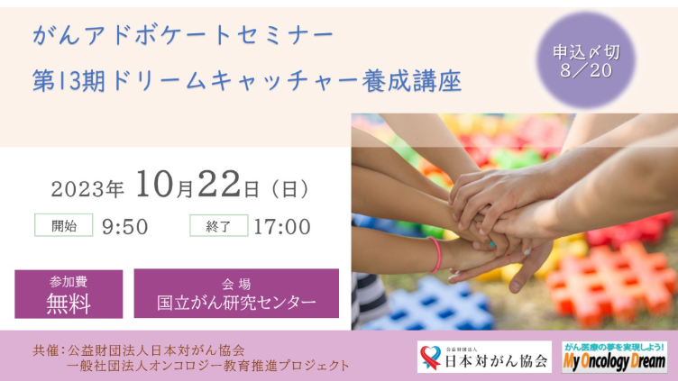 がんアドボケートセミナー(第13期ドリームキャッチャー養成講座)10月開催のお知らせ