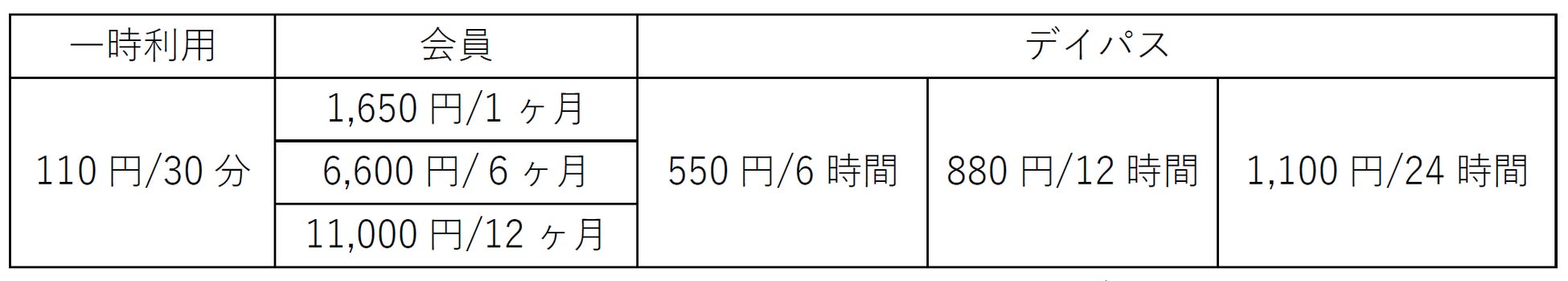※会員金額について、期間内は1回の利用時間が30分以内であれば、何回でも無料でご利用いただくことができます。また、期間内であったとしても、1回の利用時間が30分を超えた場合は延長料金(110円/30分ごと)がかかります。