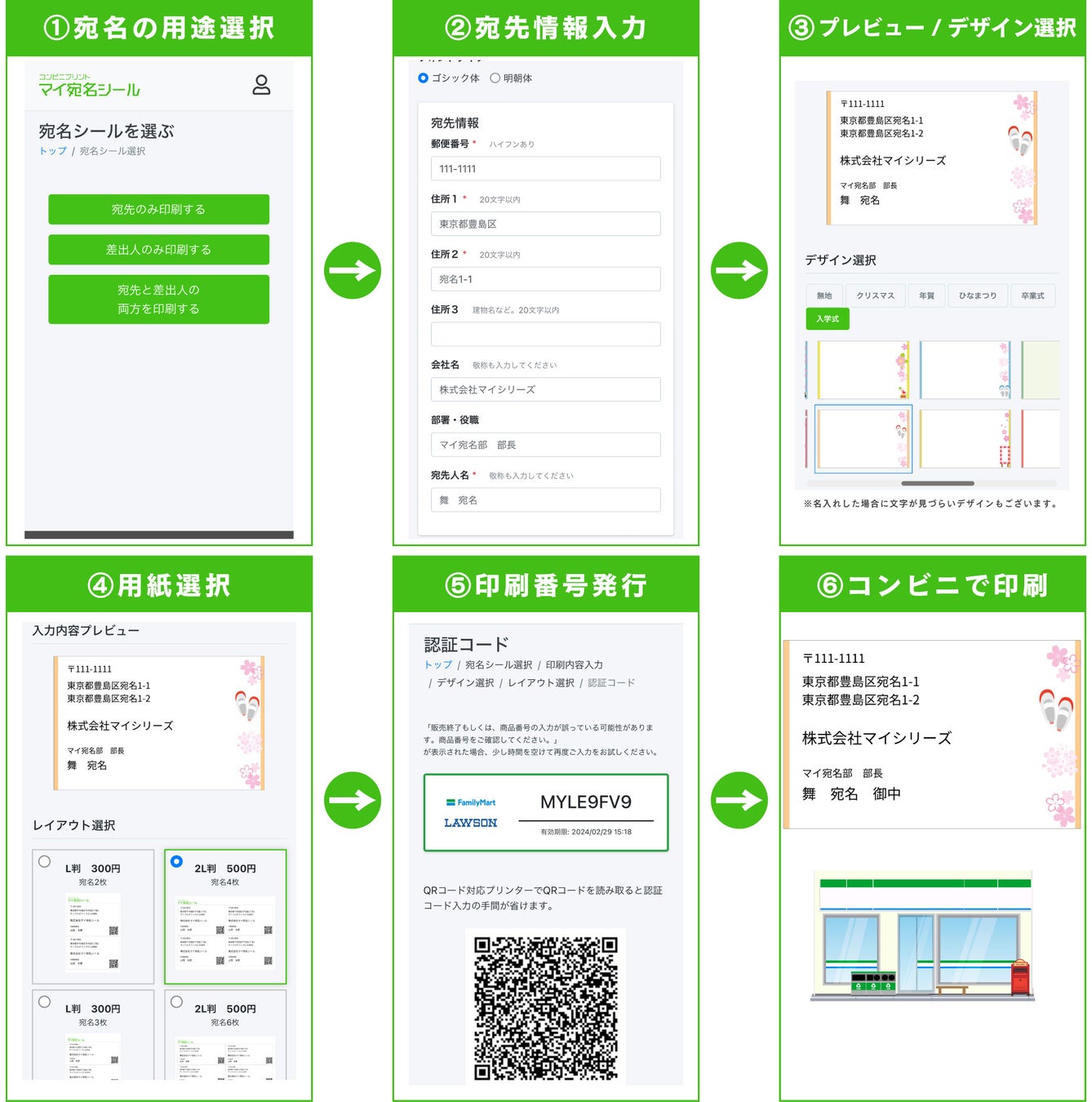 『マイ宛名シール』は、お手持ちのパソコンやスマホで専用サイトにアクセスし、宛先や差出人情報を入力するだけで、ローソン、ファミリーマート店頭のマルチコピー機で宛名シールをプリントできるサービスです。