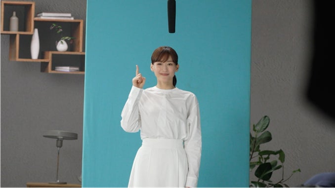 それぞれが1人ずつ撮影を進行する中、最初に、綾瀬さんが笑顔でスタジオに登場。CM出演13年目となる綾瀬さんは、おなじみのセリフも表情もバッチリ!監督の指示にも的確に応えていただき、綾瀬さんの笑い声に包まれながらスムーズに進行しました。