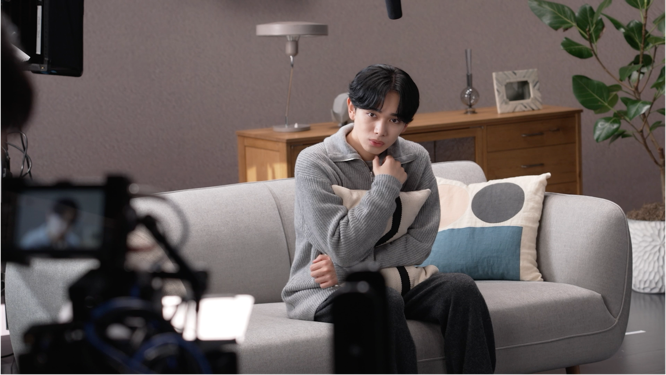 続いて、黄色のベンザ担当の本郷さんは、鼻づまりのつらい表情のシーンを撮影する中でも、合間にはスタッフと談笑するなど、本郷さんのフレンドリーな人柄が垣間見えました。銀のベンザ担当の宮世さんは、念願のベンザブロックのCM出演に嬉しさがあふれている様子で、さまざまな表情の変化やカメラワークの細かな調整が続く中でも元気に撮影に臨んでいただきました。青のベンザ担当の山﨑さんは、ニコニコの笑顔で現場入り。どのシーンも楽しげに取り組んでいただき、特に爽快感のあるシーンでは仕上がりに満面の笑顔を見せていただくなど、終始、山﨑さんの笑顔あふれる和やかな現場でした。