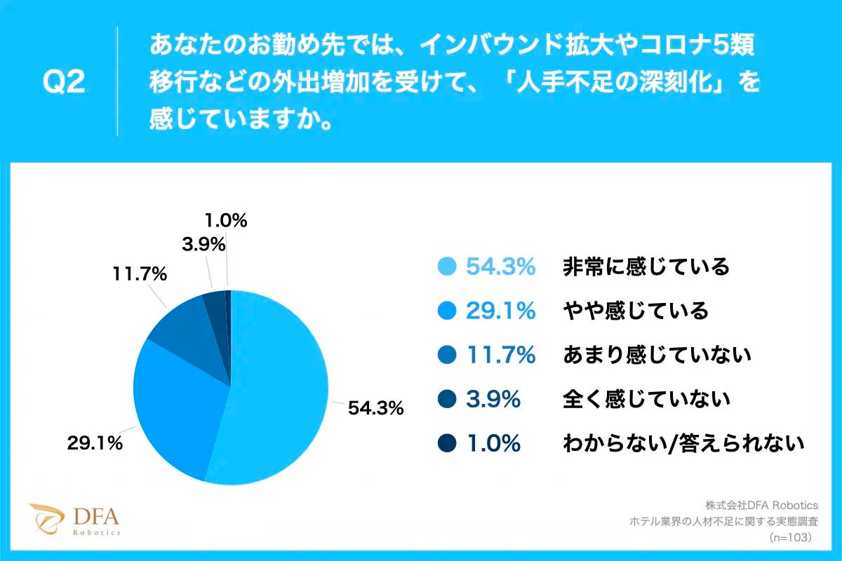 実際に、当社がホテルの管理職に対して実施した調査(※3)においても、インバウンド拡大やコロナ5類移行などの外出増加を受け人手不足の深刻化を感じている人の割合は8割にのぼっています。