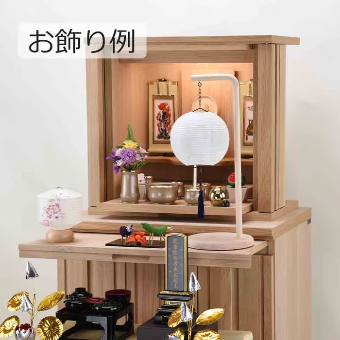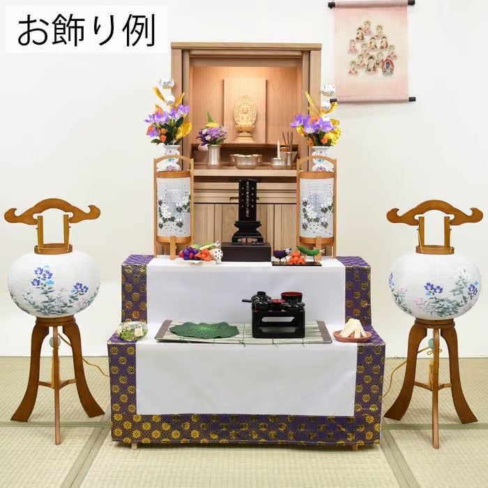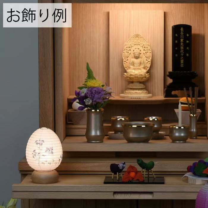 新盆(にいぼん)のお迎えに使える白無地と、なでしこが描かれた火袋がセットになっています。和室にもリビングにも合わせやすい、丁度いいコンパクトなデザインが特徴です。