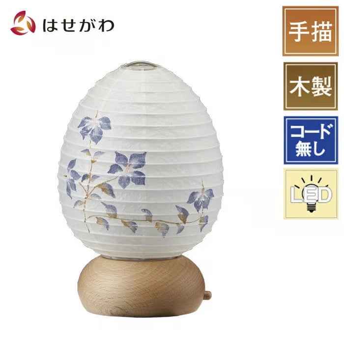 間接照明としても使える、場所を取らない新しい形の提灯です。コンパクトですが、絵柄は手描きで描かれた本格仕様です。シリーズで他の絵柄のご用意もございます。