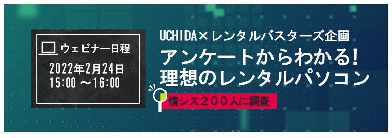 株式会社レンタルバスターズ(東京都中央区 代表取締役 天野太郎 以下当社)は今回、ウチダスペクトラム株式会社 様との共催で、2022年2月24日(木) 15:00-16:00より「アンケートからわかる! 理想のレンタルパソコン」を実施します。