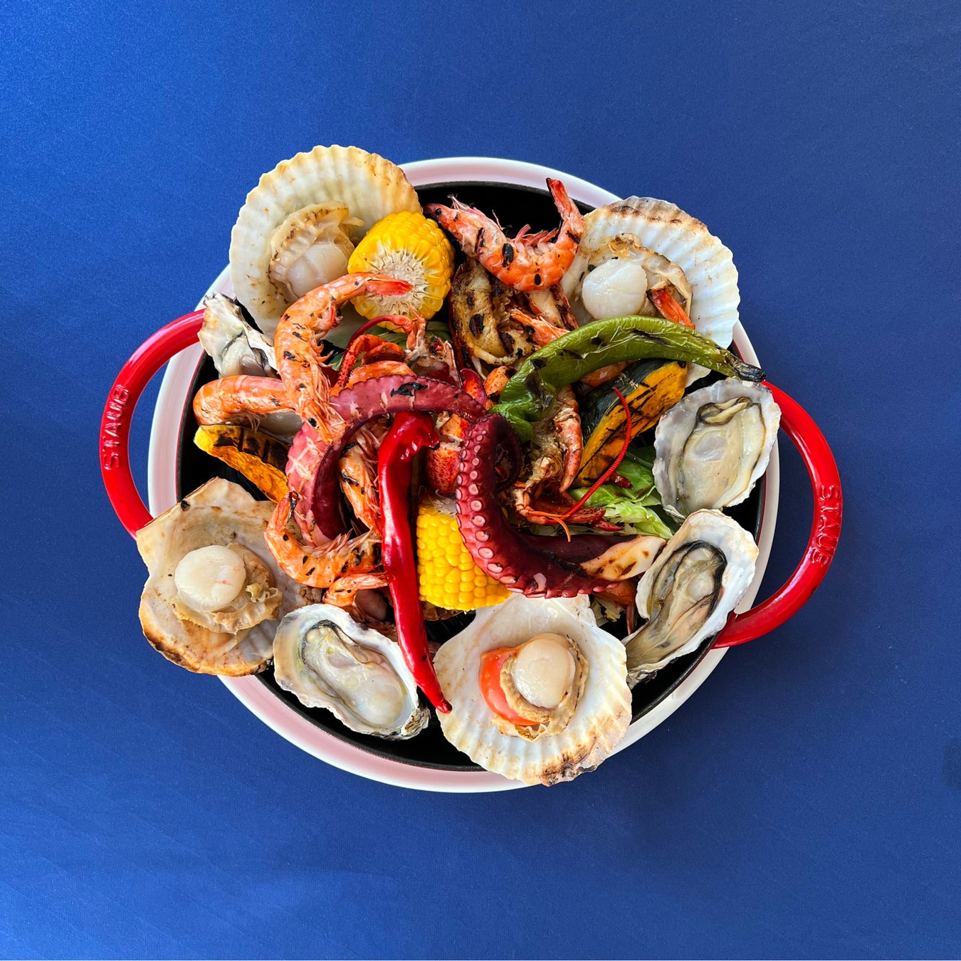 ロブスター、オイスター、ホタテ、ソフトシェルシュリンプ、タコと海の幸を思う存分堪能できる“FISHERMAN”の名にふさわしい一皿。