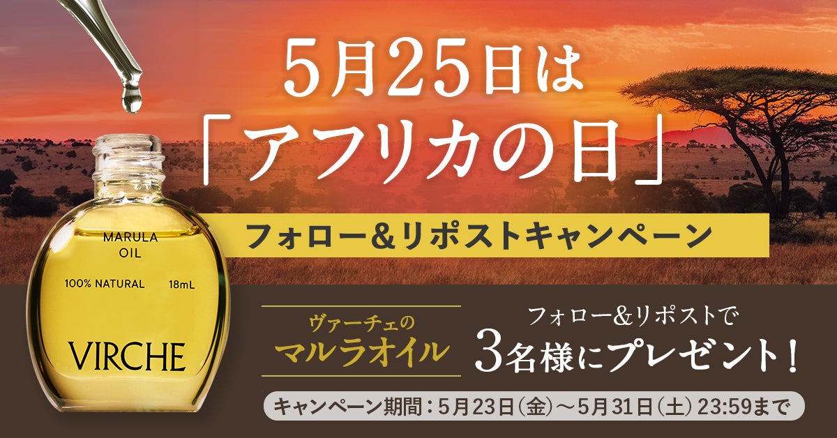 株式会社ヴァーチェ(本社:大阪府大阪市、代表取締役:藤原友香)が展開するエイジングケア(※1)ブランド「VIRCHE(ヴァーチェ)」は5月25日(日)の「アフリカの日」に際し、ヴァーチェ公式Xにてフォロー&リポストキャンペーンを実施いたします。
