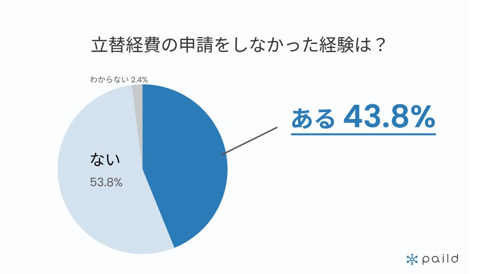 経費を自腹で負担したにもかかわらず、経費精算時に申請しなかった経験がある人は約半数の43.8%にのぼりました。