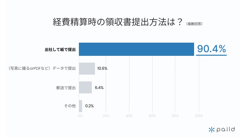 【経費に関する実態調査】90%以上が経費精算のために出社し、紙で領収書を提出