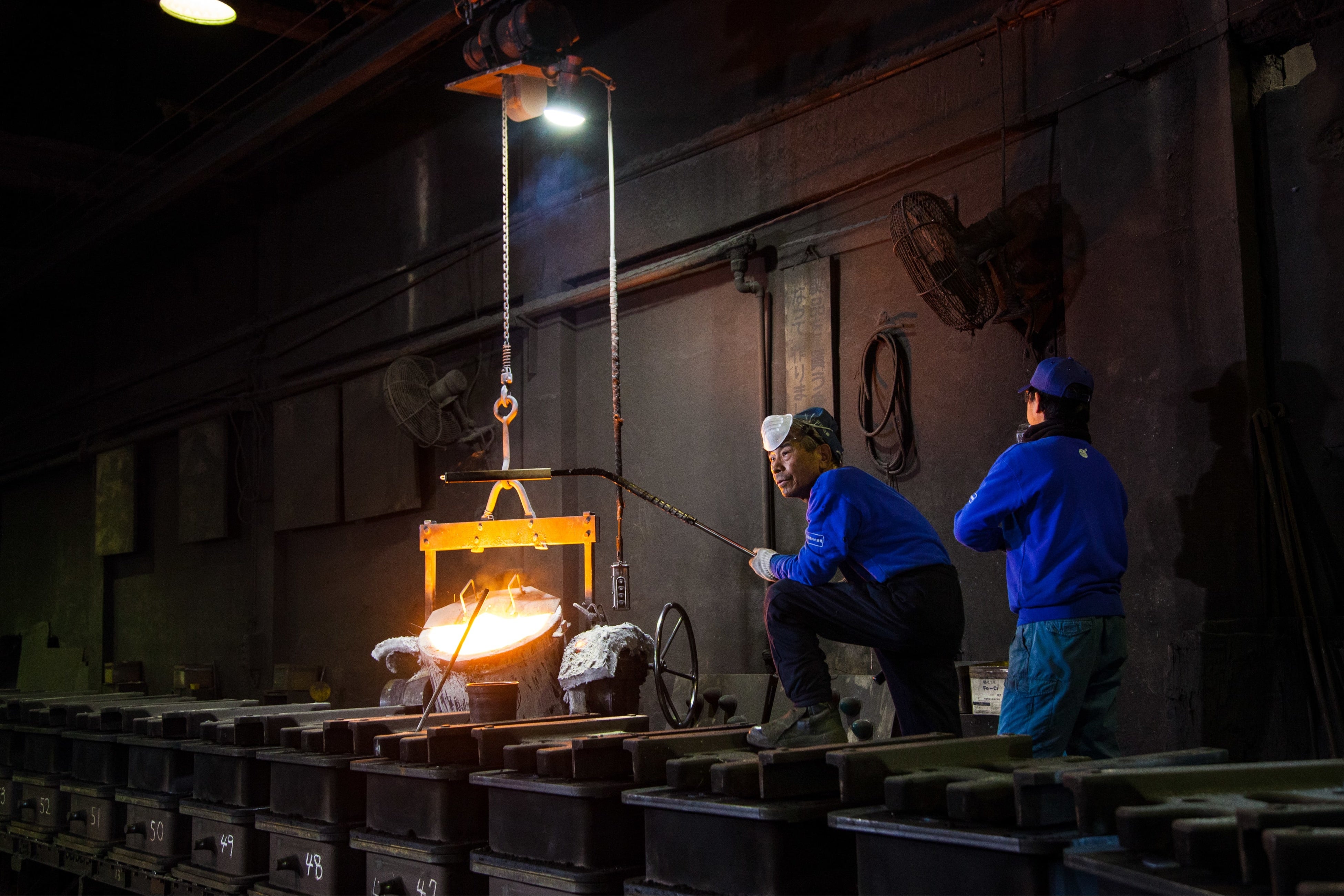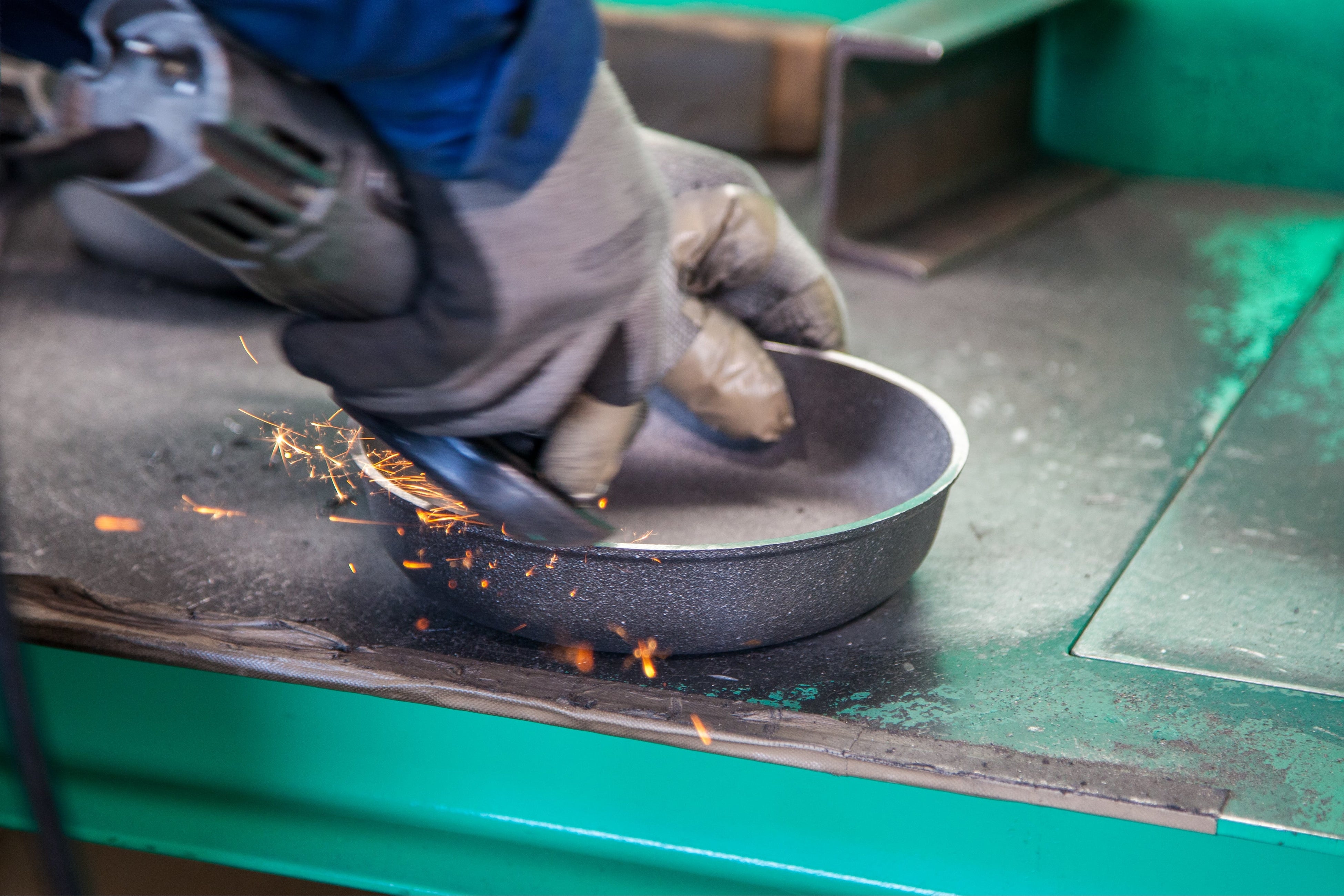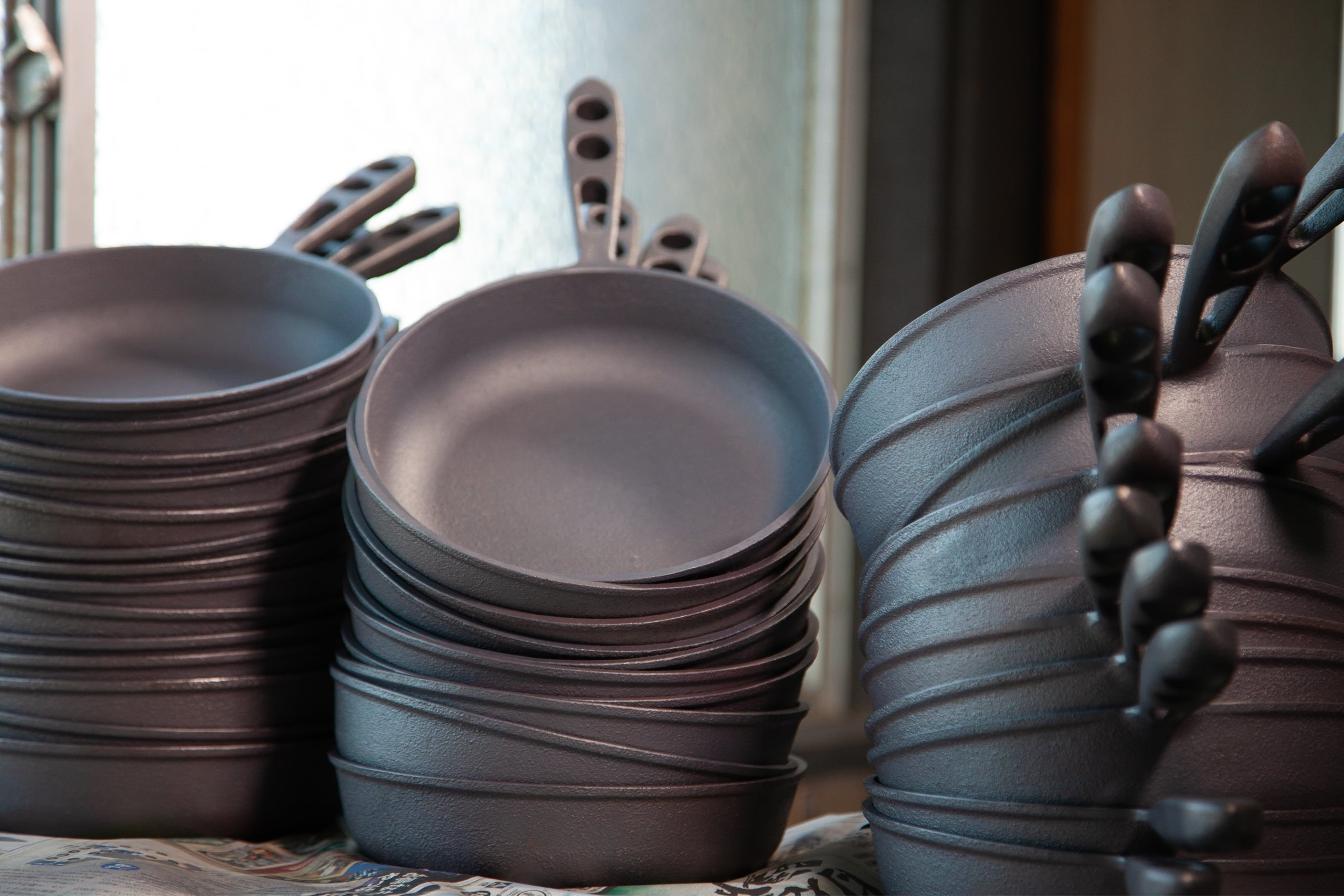 1938年創業の老舗鋳物(いもの)屋である石川鋳造は、鋳物業として盛んな愛知県碧南市にて80年あまりの歴史を誇ります。その熟練の技術を駆使し、2017年12月に「おもいのフライパン」を発売。瞬く間に大人気商品となり、入荷が3年待ちの状態になりました。「おもいのフライパン」は、テフロン加工を施さないのが特徴のひとつ。従来のフライパンは約180℃で樹脂コーティングが剥がれてしまい、これが料理に混ざることで人体への影響も心配されますが、無塗装の「おもいのフライパン」は安心・安全。さらに、塗装が剥がれず変形することもないので、きちんと手入れをすれば長く使い続けることが可能です。使うたびに油膜が層になり艶が増し、使い込むほどに焦げ付きにくくなるもの魅力です。この「おもいのフライパン」は、サイズや形違いでさまざまなタイプを展開し、発売のたびに大きな反響を呼びました。