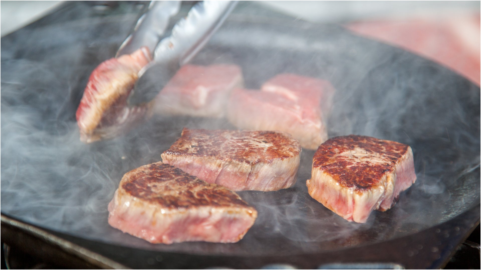 - したがって、「おもいのフライパン“頂”」でステーキ肉を焼くことで、旨味が閉じ込められ、やわらかい肉質で加熱調理できることが明らかとなった。