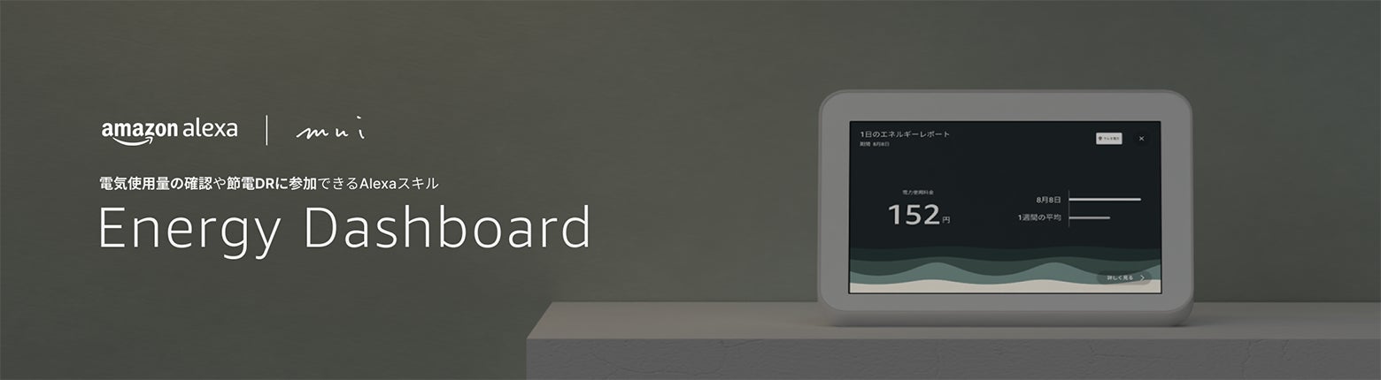 ・mui Labが提供する「エネルギーダッシュボード」は、カーム・テクノロジーのアプローチを用いた体験デザイン「Calm UI®」を採用。電気やエネルギーの利用量見える化やデマンドレスポンスなどの機能を実装しており、「Alexa Smart Properties」を通じて、Amazonの「 Echo Show」シリーズで使用可能。