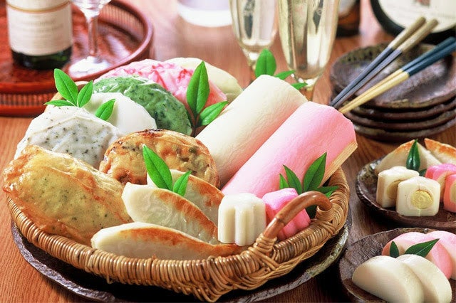 ● 昆布巻かまぼこ(甘く煮たごぼうにすり身で包み、昆布を巻き蒸した一品)