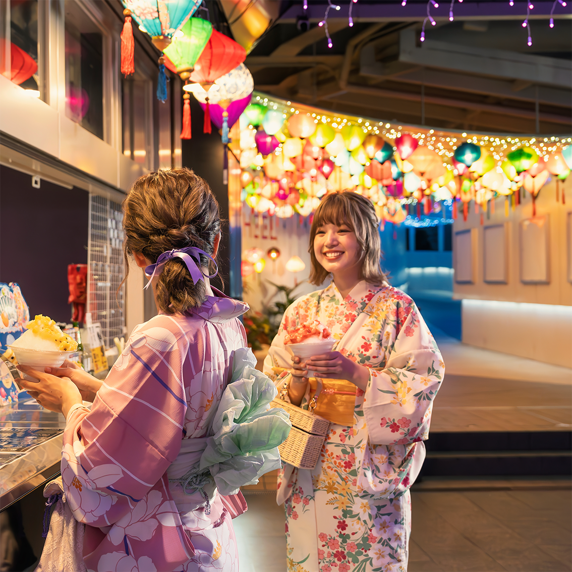 観覧車の敷地内の一部が、”色鮮やかなランタン”で彩られており、お祭り気分の味わえるフード・ドリンクが新登場。ここでしか味わえないお祭りをぜひ体験にきてください。