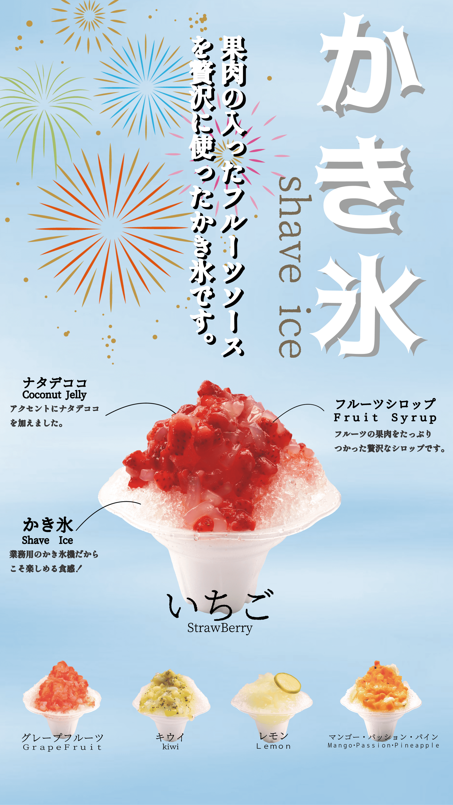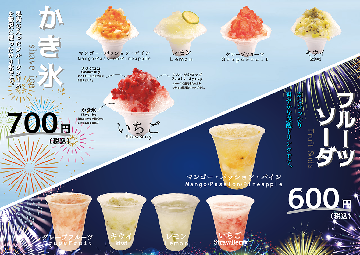 ”果肉入りフルーツかき氷”or”果肉入りフルーツソーダ”を受け取ります。