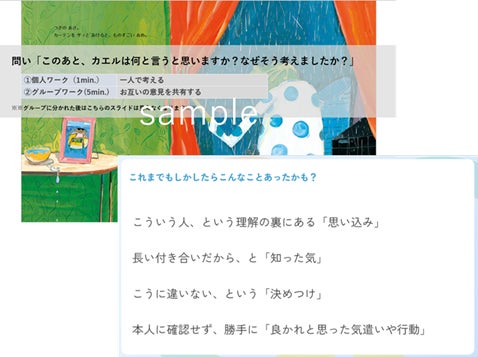 絵本という心理的安全性を確保しやすい題材を用いることで、安心して話しやすい雰囲気の中で参加者の主体的な関与を引き出します。