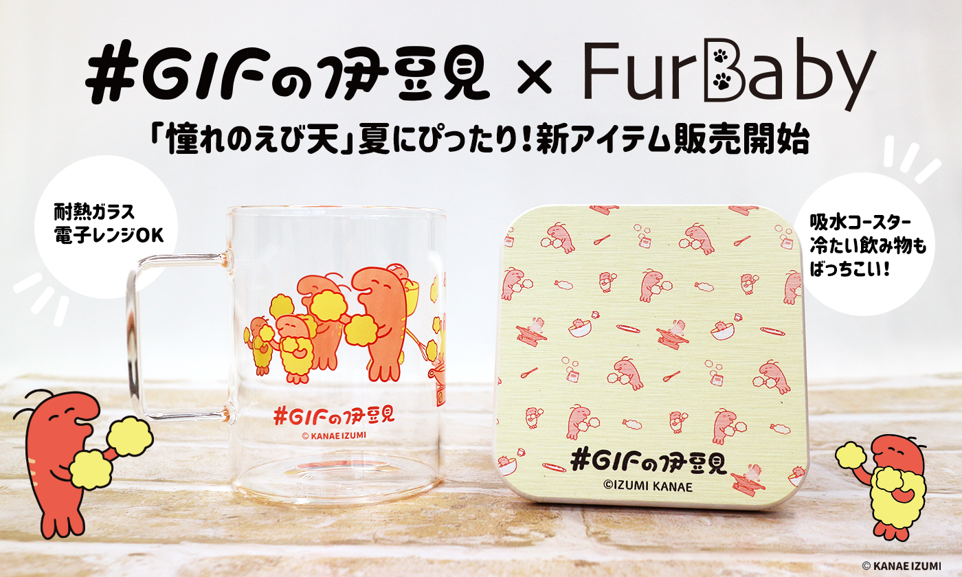 TwitterやTikTokでいいね!&RTが30万越えの大人気動画 「憧れのえび天」のコラボ雑貨第2弾!#GIFの伊豆見とFurBabyのコラボ雑貨販売開始のおしらせ