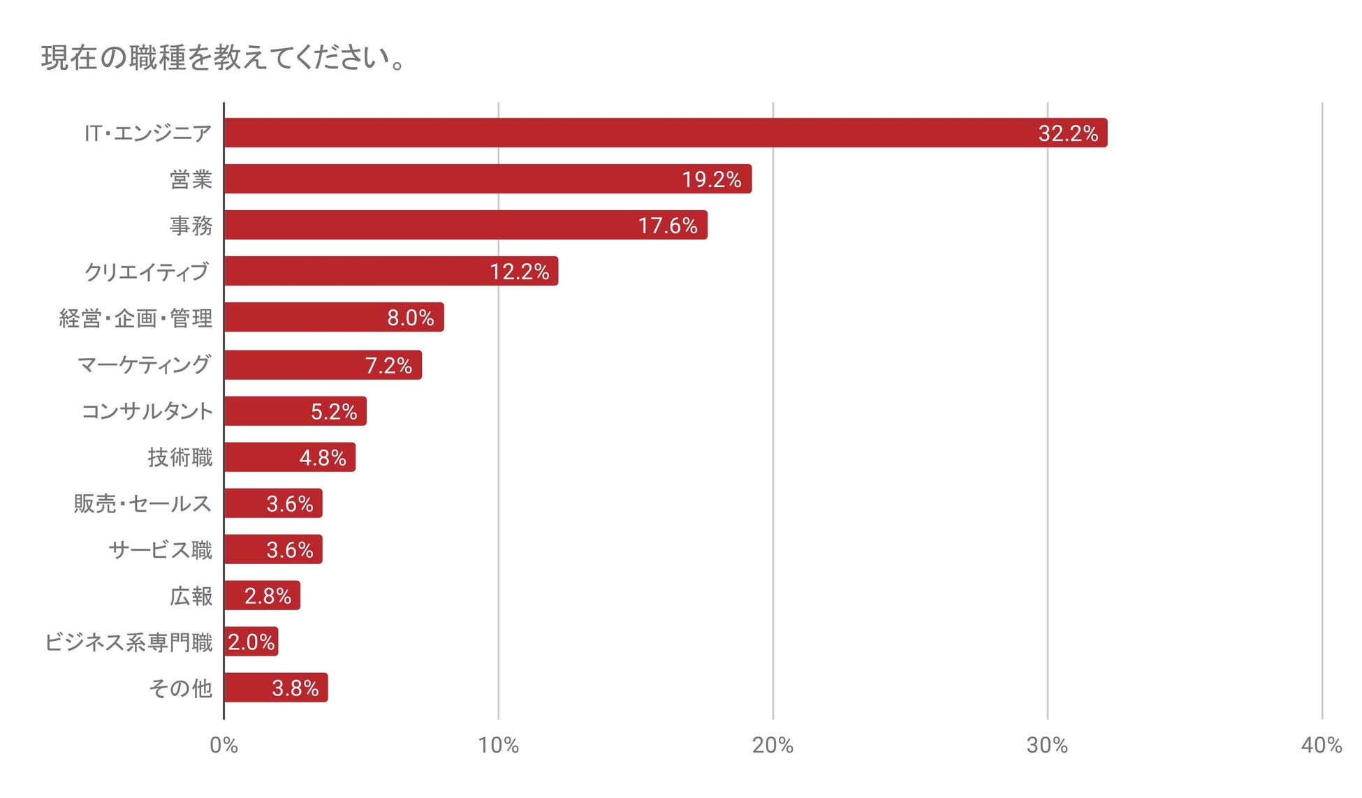 顕著な結果が現れたのは「63%が現在と違う職種でフリーランスになりたい」という点で、将来なりたい職種には「IT・エンジニア」「クリエイティブ」「コンサルティング」の3職種に最も多くの回答が集まりました。この結果からは、これらの職種でなければフリーランスになれないのではないか、と考えている方が多いことが分かりました。今後は、様々な職種の方がフリーランス化する上で必要な点についても、試行錯誤していきたく考えています。