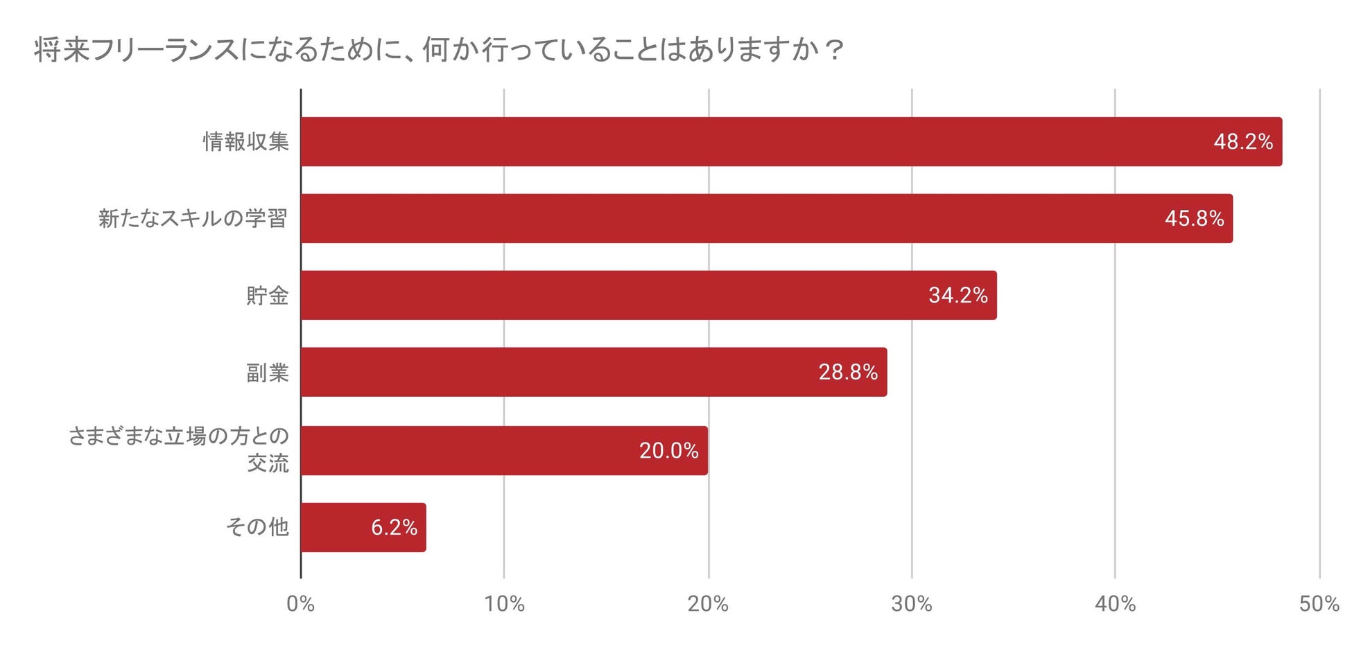 - 将来フリーランスになるため、45%が新たなスキルの学習を実施している