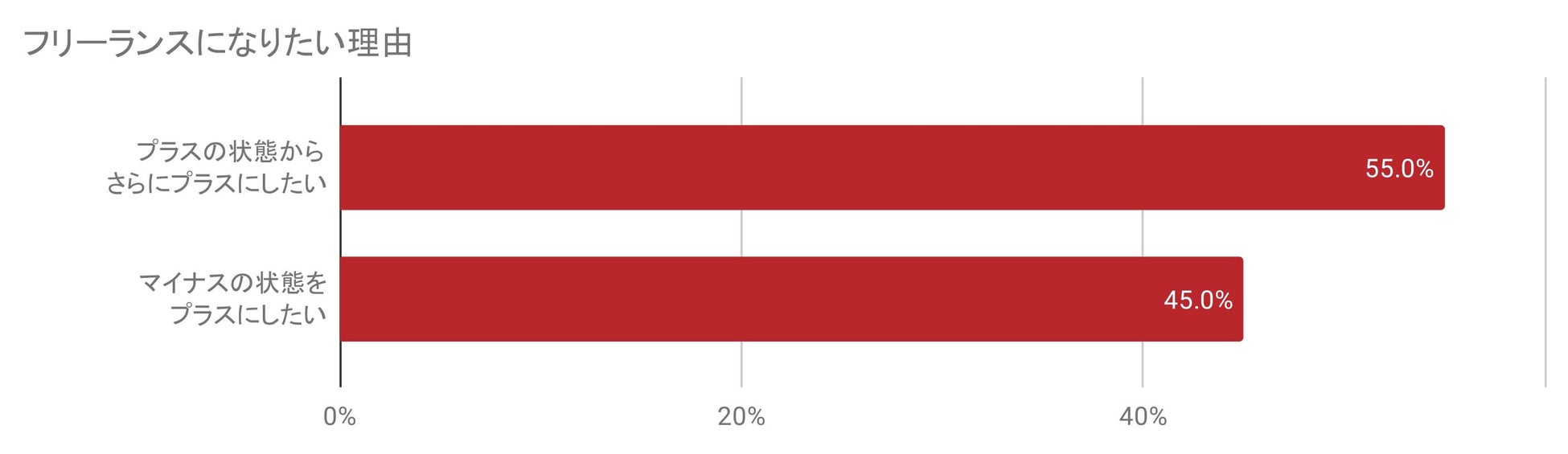 - フリーランスになりたい理由の45%が「マイナスの現状をプラスに変えたい」