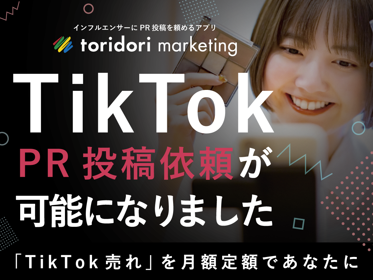 TikTokerの拡散力で商品・サービスをPRできる!PR実績15万件のインフルエンサーマーケティングプラットフォーム『toridori marketing』がTikTokに対応!