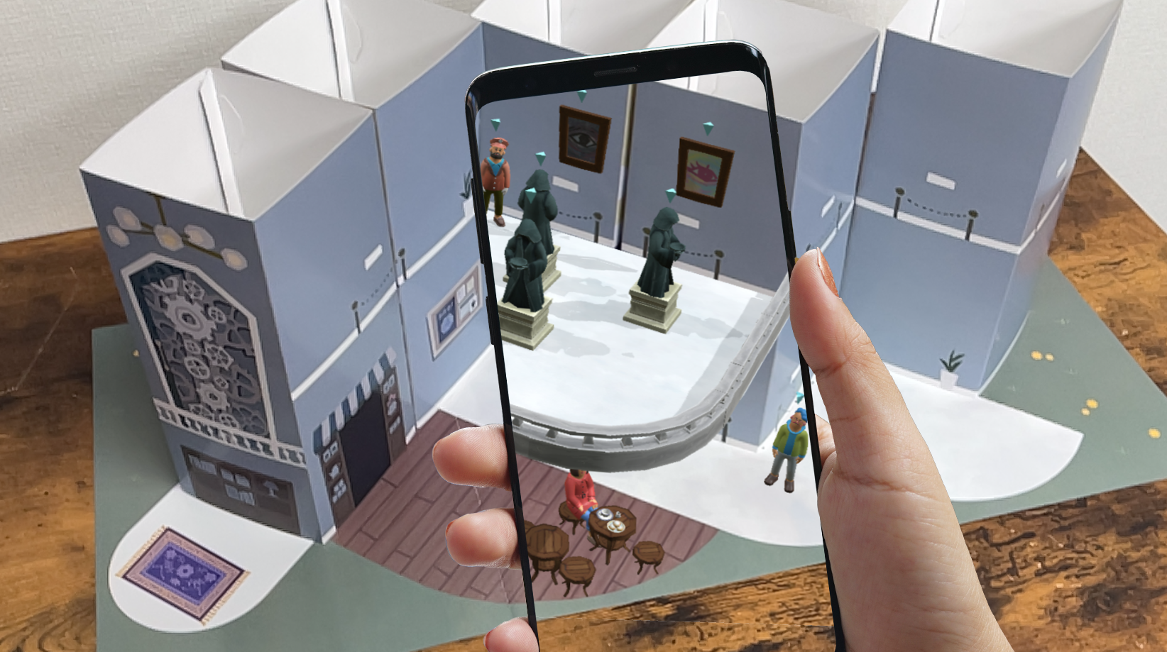 キットの上に広がる“ミニチュア美術館”をアバターで巡るAR体験