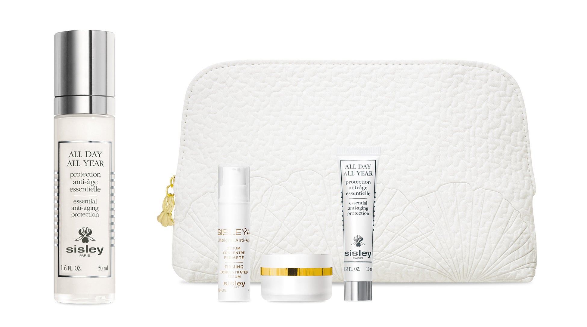 デイ プロテクト乳液「オールデイ オールイヤー N」[現品]に、同製品とプレミアム エイジングケア* “シスレイヤ インテグラル”シリーズのミニ サイズ 計3点、オリジナル ポーチをセットしたスペシャルなキット。