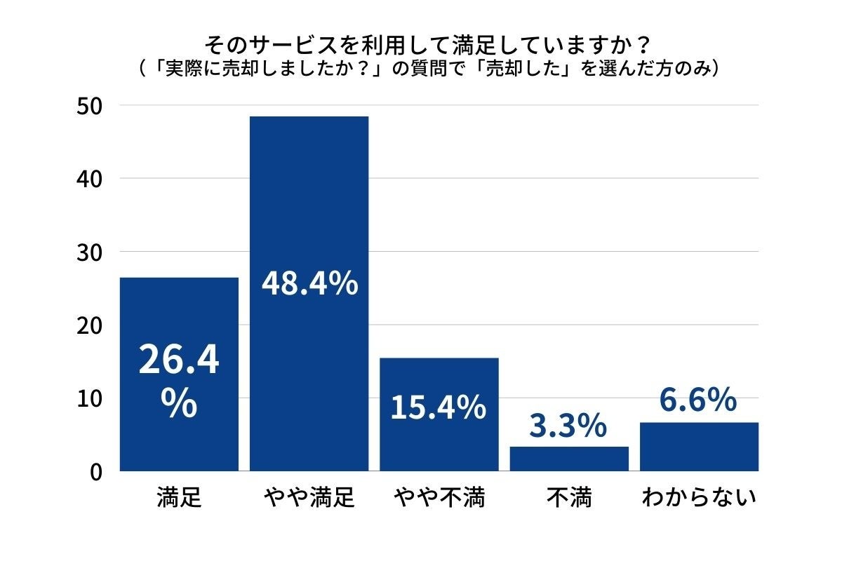 ◆売却したサービスの満足度は、74.8%が「満足」「やや満足」している