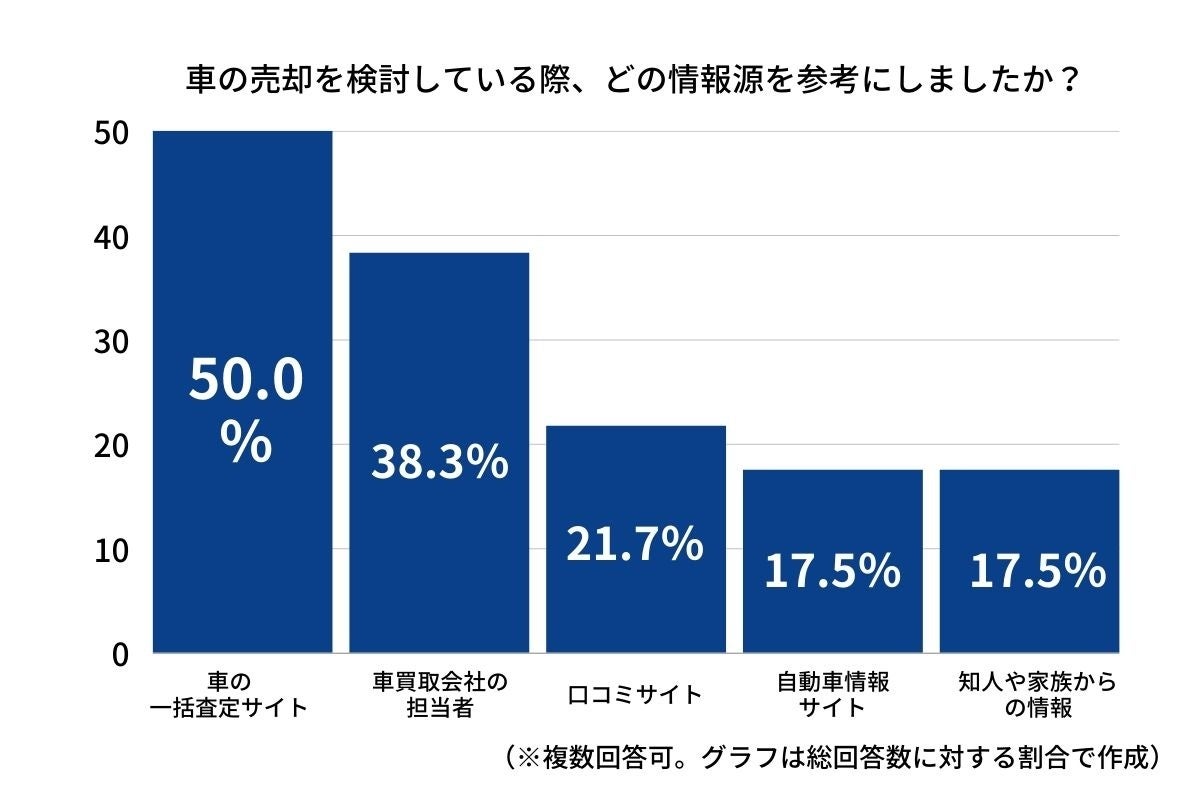 ◆車の売却検討で、参考にした情報源は「車の一括査定サイト」がトップ