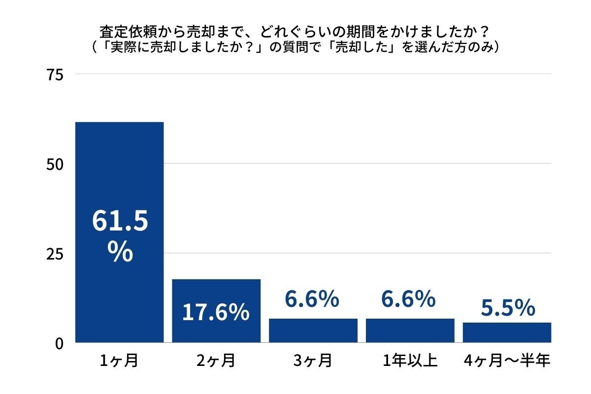 売却までの期間は、「1ヶ月以内」が多数を占め、とにかく「短期決戦」で決着させたいと考える人が多いことが判明しました。