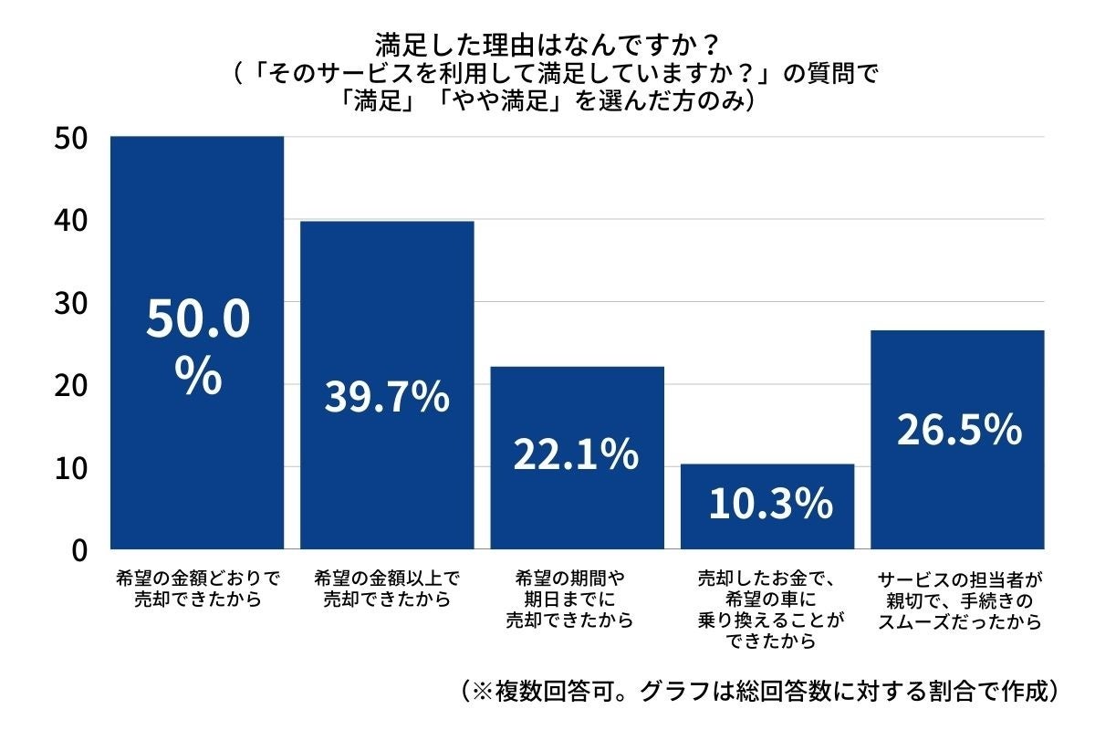 ◆車の売却に「満足」している人は「売却金額」だけでなく「売却に要した期間」と「担当者の対応」も重視