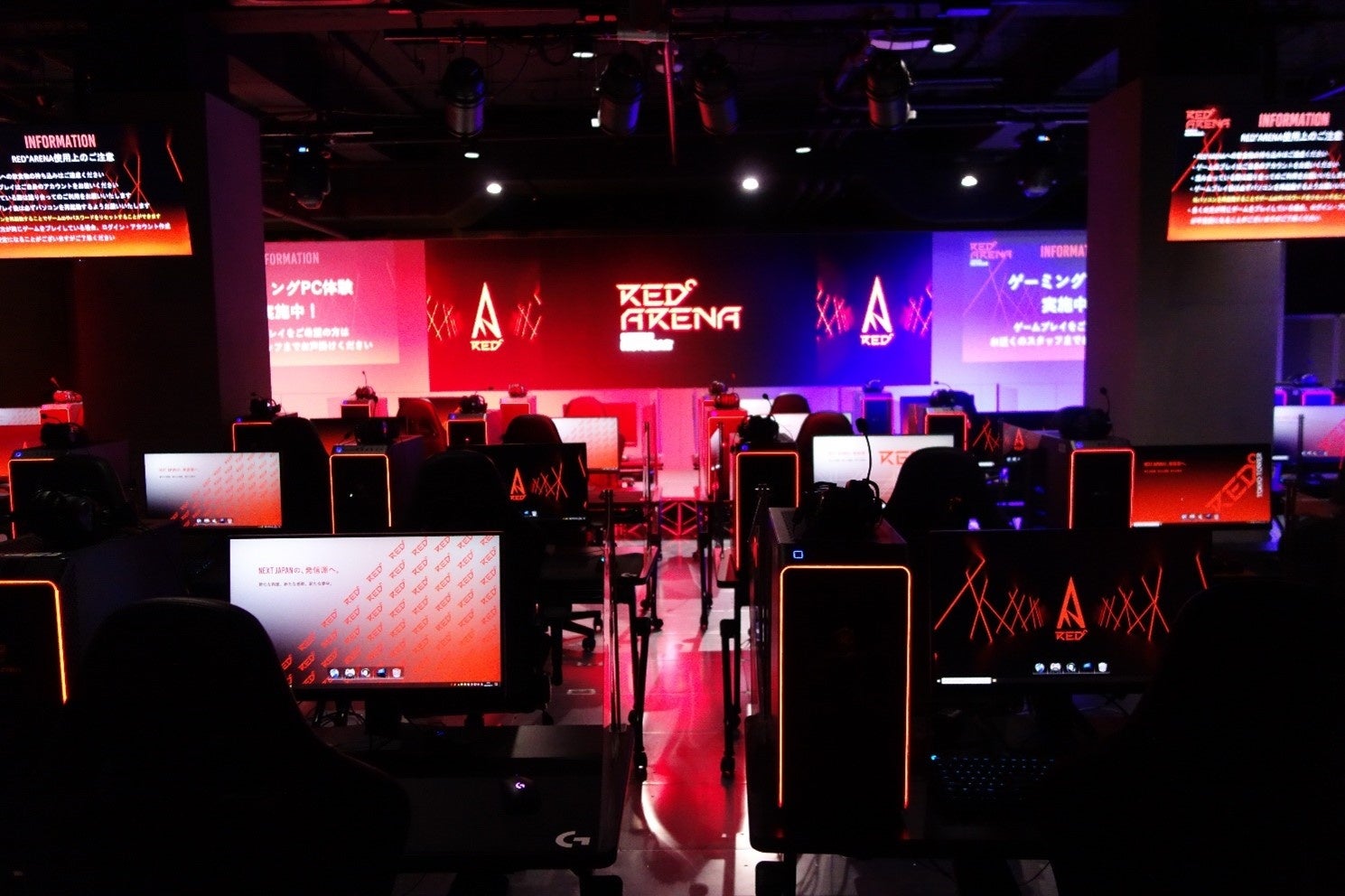 その5Fにある「NETGEAR RED°ARENA」は最新かつ高性能なゲーミング PCを32台設置した理想的なプレイ環境でゲームを思いきり楽しめる空間です。esports大会はもちろん、オンライン配信イベントや esports教室など、esports初心者の方でも楽しめるコンテンツを日々お届けしています。