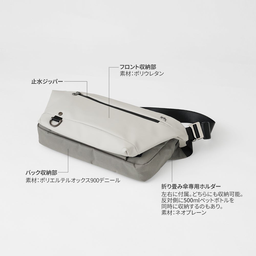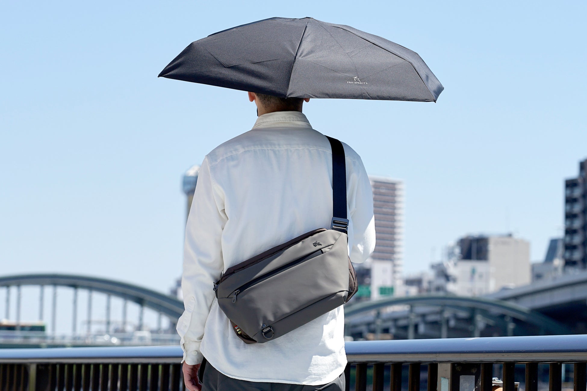 この次世代のショルダーバッグは、晴雨兼用のオリジナル折りたたみ傘が付属しているため、突然の雨や日差しにも瞬時に対応可能。防水性に優れた高機能のマテリアルや止水ファスナーを採用し、内部の荷物をしっかり守ります。まさに、アウトドアから日常使い、旅行やちょっとしたお出かけまで、あらゆるシーンにぴったりの頼れる最強のパートナーです。